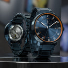 - Excelente acabado: El fondo atornillado deja ver la delicada mecánica. El cristal mineral zafiro en la parte delantera es particularmente resistente a los arañazos.