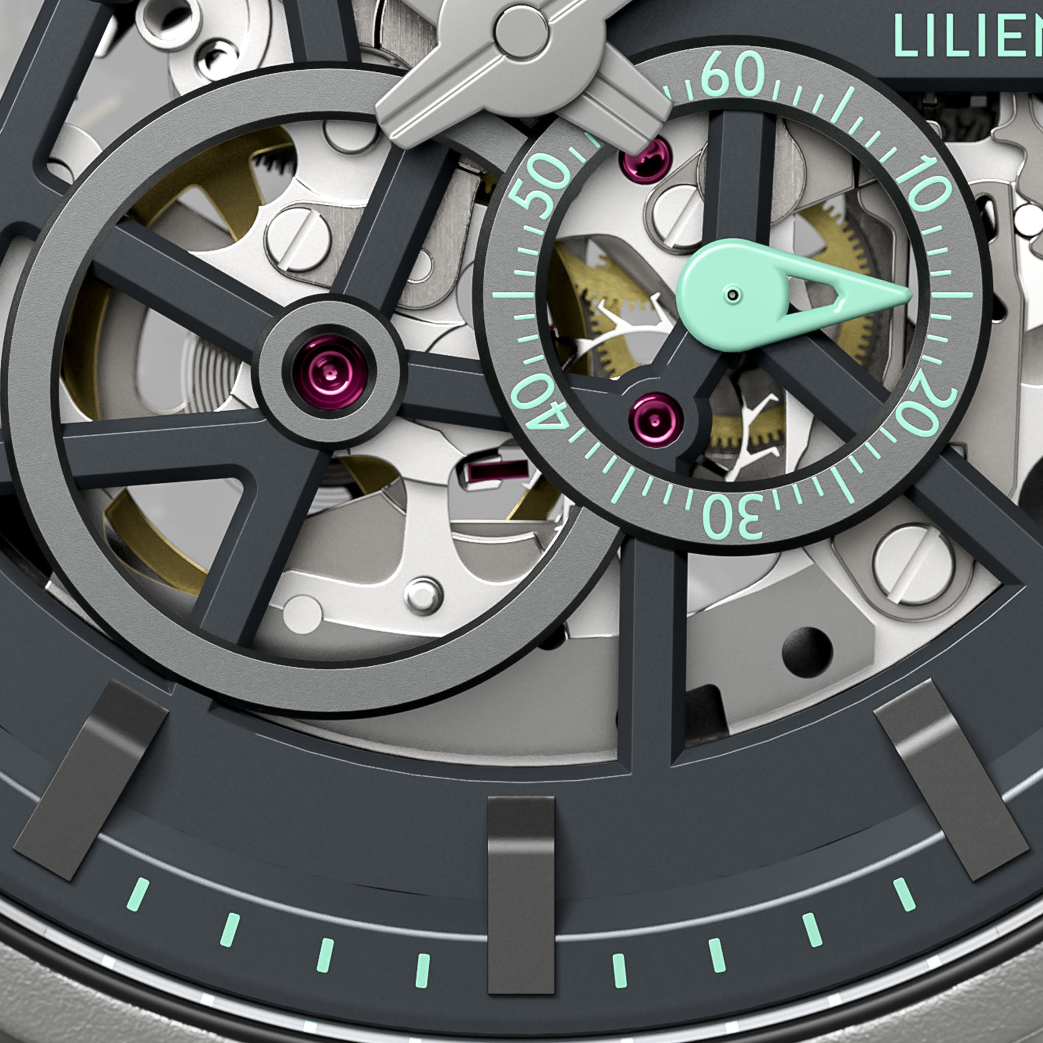 - Precisión hecha visible: La esfera esqueletizada revela la compleja estética del movimiento automático.
