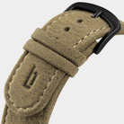 - Le bracelet en cuir de papier végétalien, fabriqué à partir de cellulose, de latex et de liège, est confortable, durable et peut être remplacé rapidement grâce au mécanisme à libération rapide.