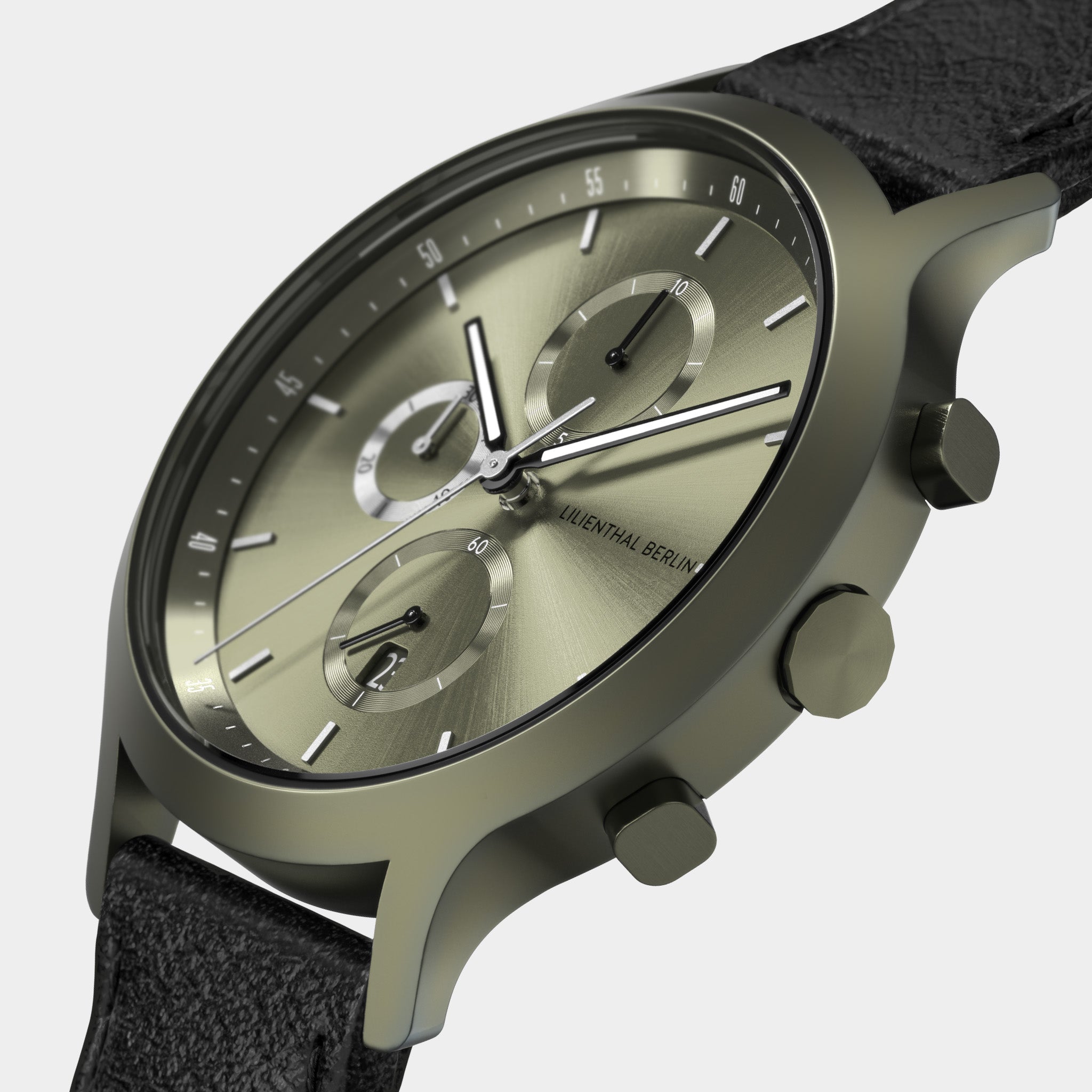 - Fresco e non convenzionale: Il quadrante lucido Sunburst è stato arricchito con dettagli Superluminova. La cassa opaca e il cinturino intercambiabile rendono questo cronografo verde scuro un vero oggetto di ammirazione.