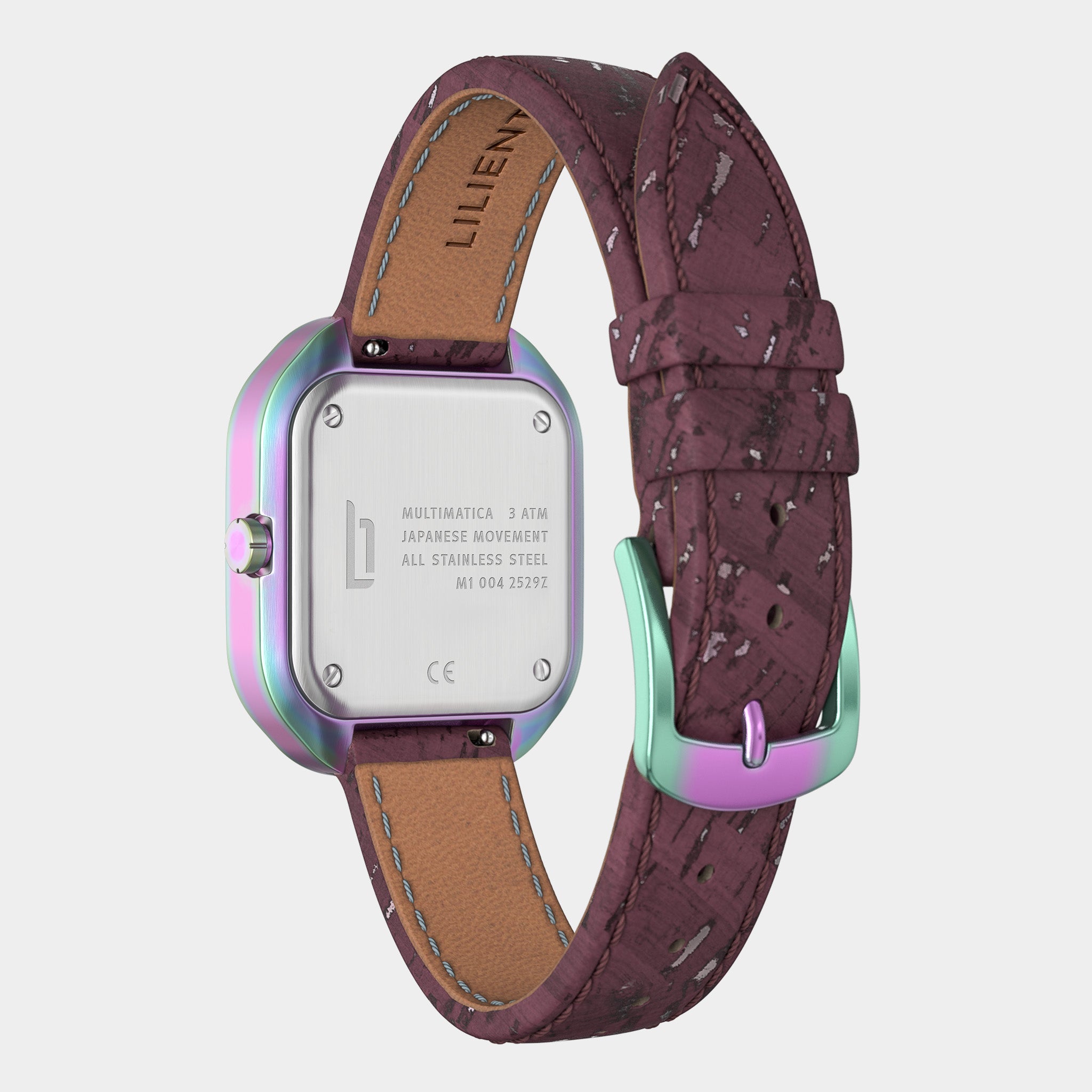 - Pasek z wegańskiej skóry papierowej, wykonany z celulozy, lateksu i korka, jest wygodny, trwały i można go szybko wymienić dzięki mechanizmowi szybkiego odpinania.