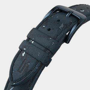 • Pasek z wegańskiej skóry papierowej, wykonany z celulozy, lateksu i korka, jest wygodny, trwały i można go szybko wymienić dzięki mechanizmowi szybkiego odpinania.